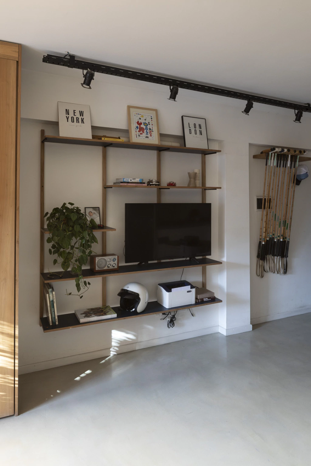 Sistema mural, modulado con estantes intercambiables. Opciones de distinto largo y combinaciones variables.