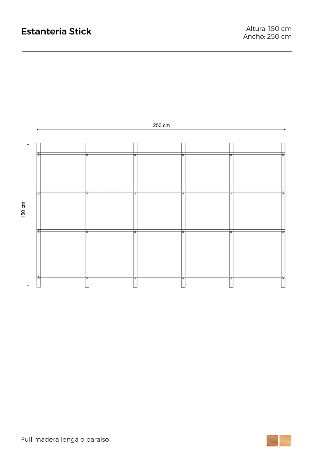 Estructura maciza de incienso o peteribí, con sticks o ménsulas de hierro en diferentes colores (a elección). Estantes enchapado melaminico laca o enchapados en roble americano, incienso o goiabao tostado.