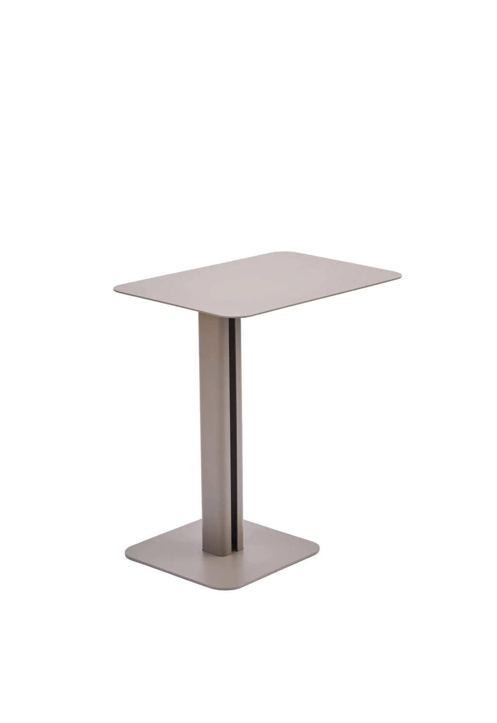 Mesa auxiliar o de arrime C-C La Carpintería con base de chapa plegada y hierro con tapa de chapa pintada al horno.