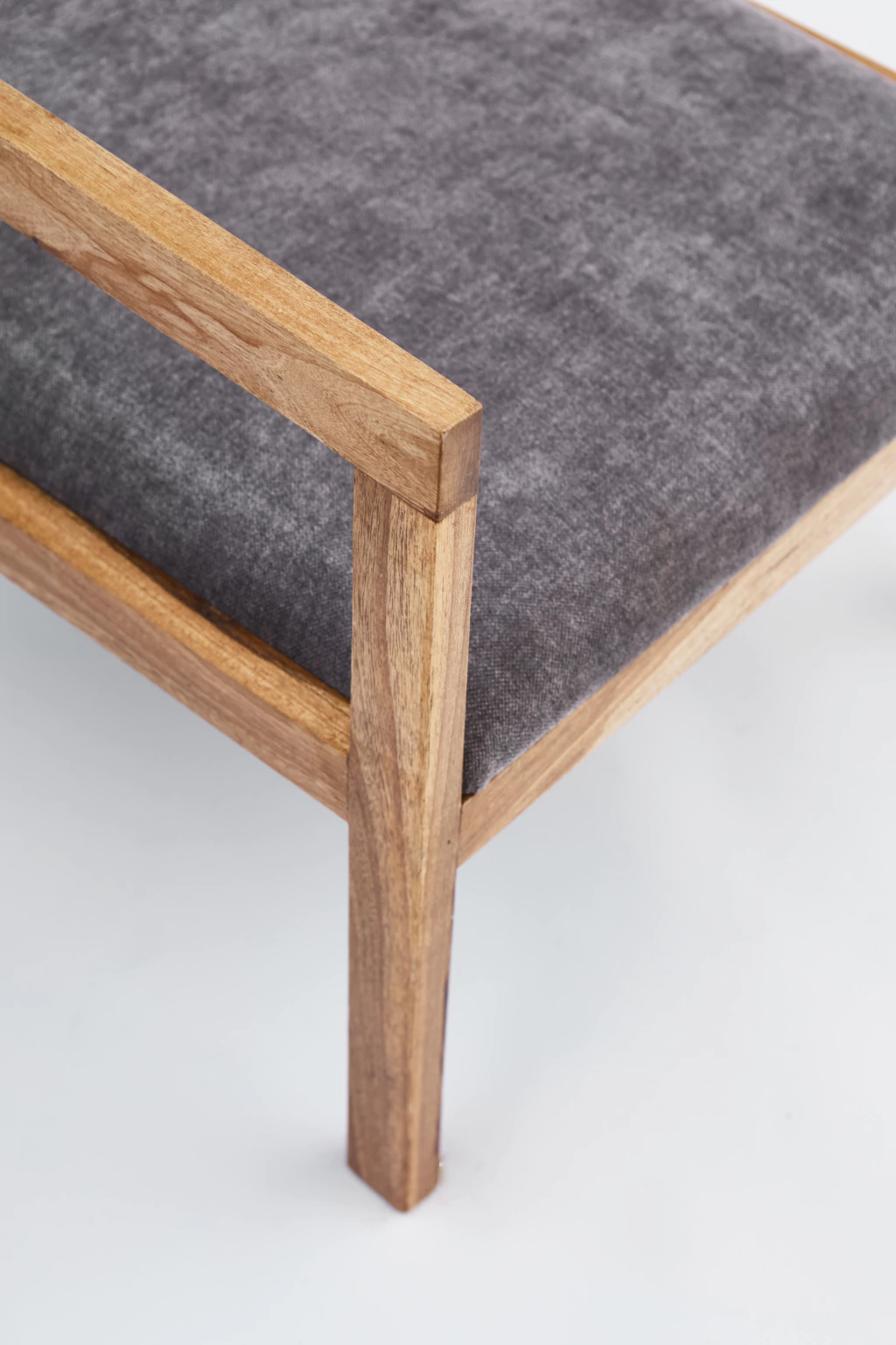 Poltrona con apoyabrazos hecha en madera peteribi tapizada.