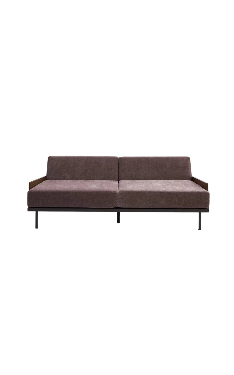 Sofá de diseño minimalista, liviano, muy cómodo. La estructura metálica y la madera que lo revista, permite en dimensiones más chicas que los sillones habituales, lograr más espacio para sentarse y que visualmente sea muy liviano. Siempre sin perder la elegancia y sofisticación